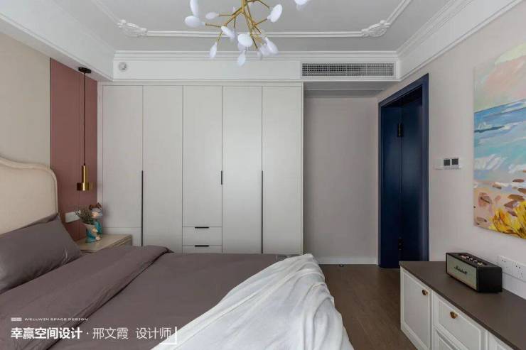 主卧利用延展的石膏线条与抽象挂画