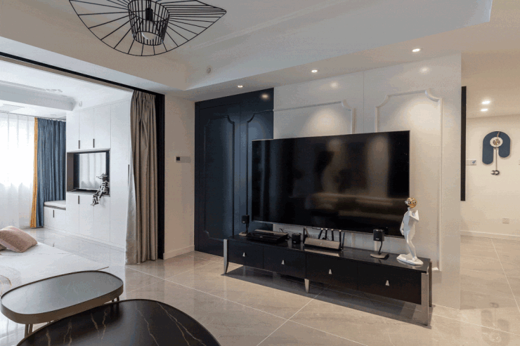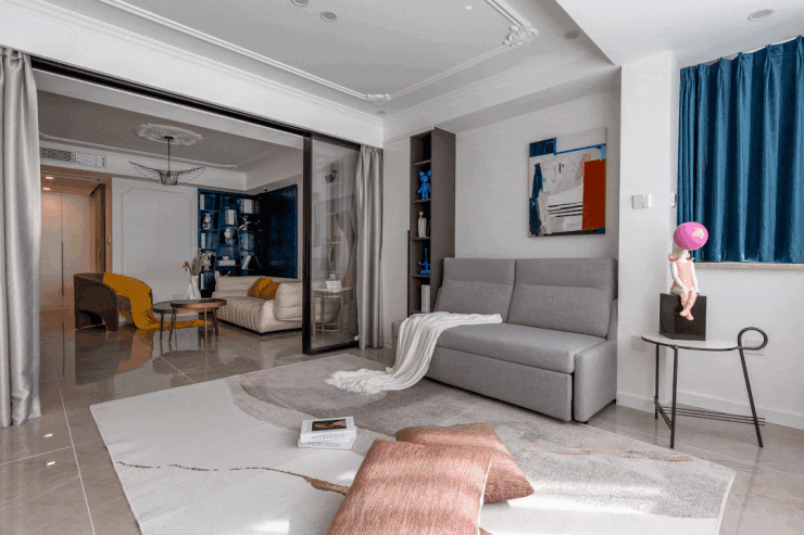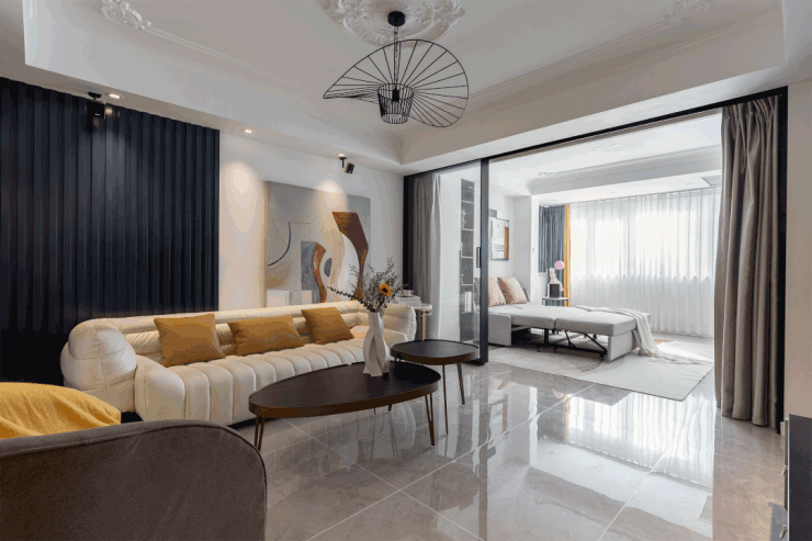 便将其打造成多功能区域,采用三联动玻璃门将两厅隔开
