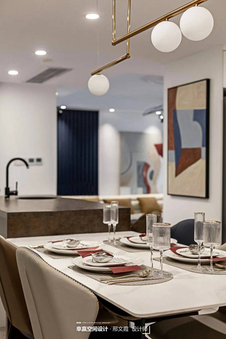 再以金属元素的吊灯巧妙点缀