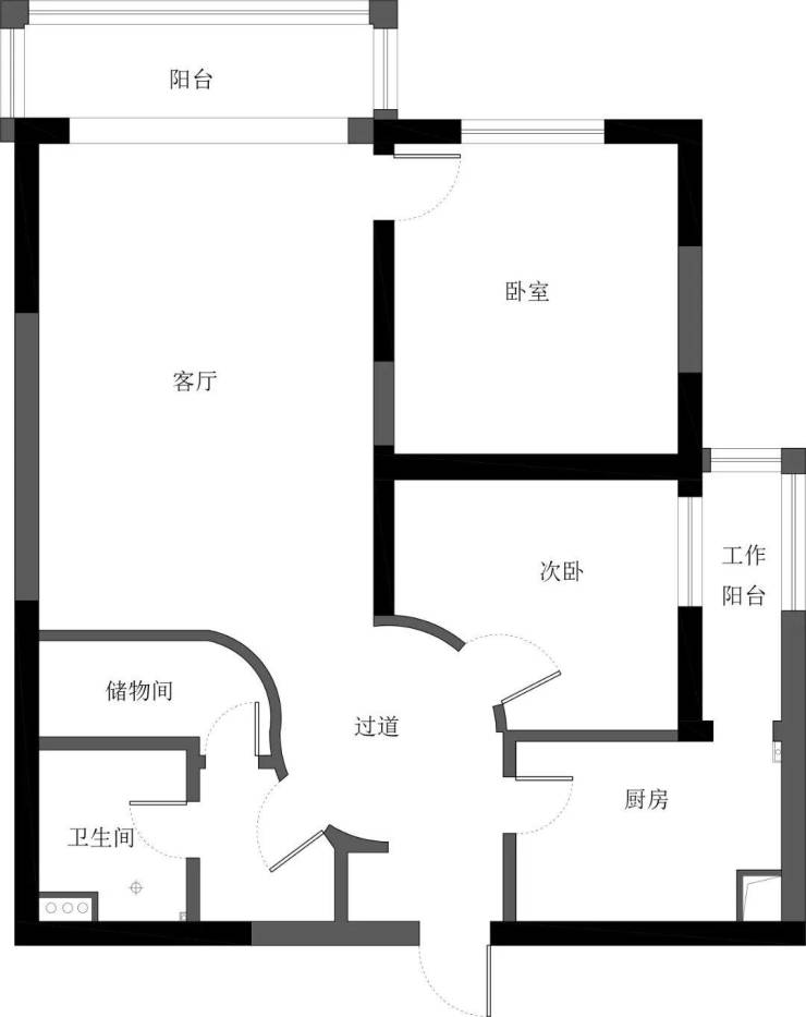 问题1:原户型没有餐厅,入门狭窄压抑,整体空间采光不足,并且空间拥挤局促。