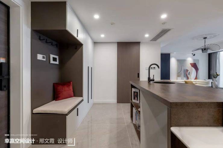 遥相呼应,隔而不分,玄关柜设立较多
