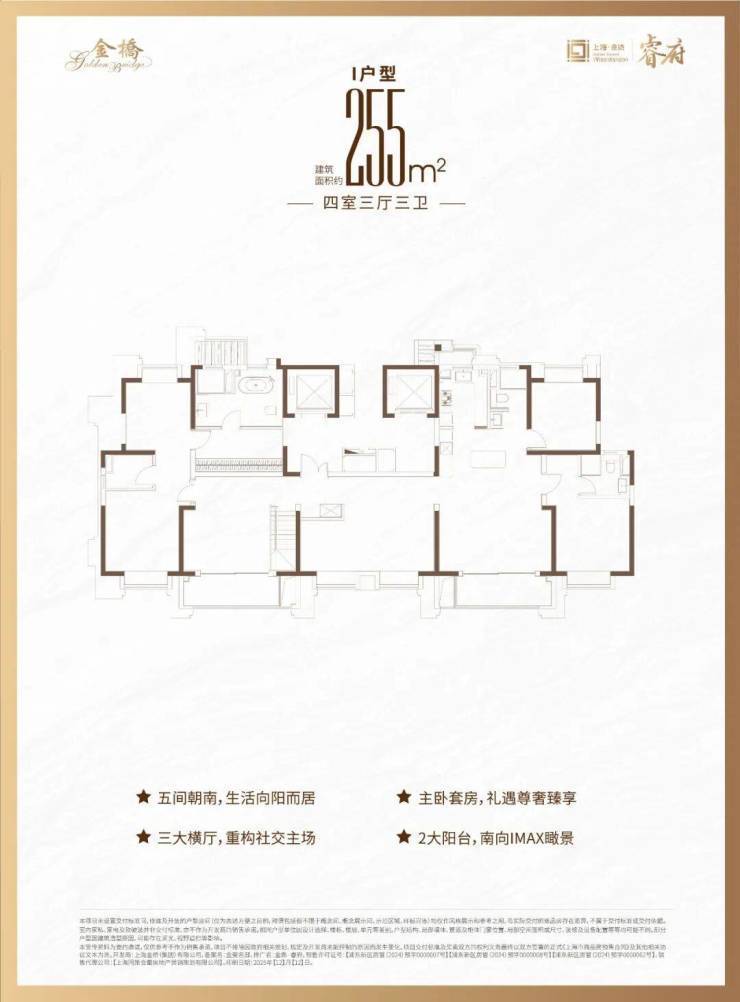 约165–185㎡四房:高端改善,主卧套房+双卫,空间尺度优越