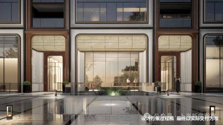 公区方面, 从归家社区大堂、大堂序厅、以及入户单元大堂一路看过来,体现出一套脉络完整,层层递进的海派顶奢设计语言。