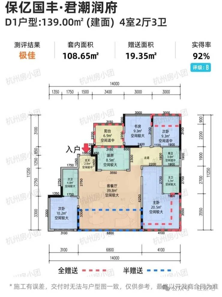 丨高层近100%使用空间:作为板块内少有的限价解除后的新一代高层作品,项目高层户型以优越的空间格局,实现了近100%实际使用空间,约3-3.1米层高超越同侪。