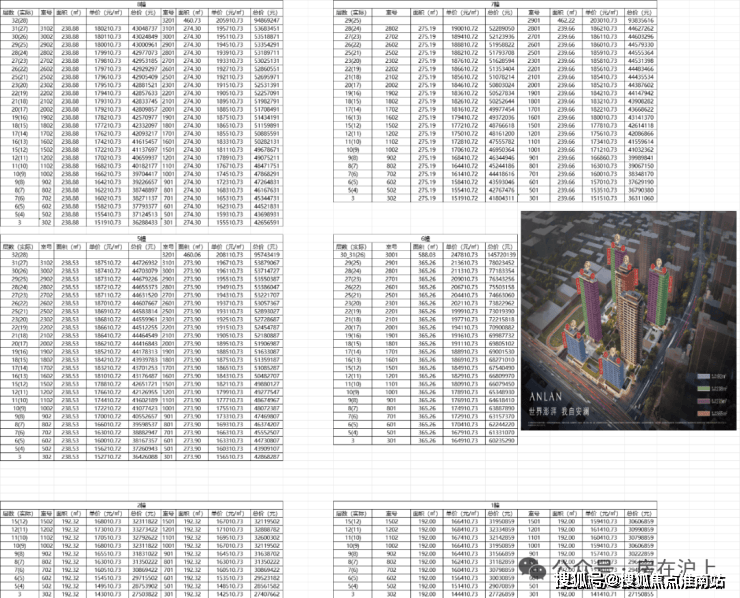 「安澜上海 一房一价表」