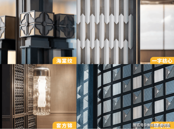 在东方纹样上, 保利也是独具匠心,打造了五种纹路!其中的 蟒水纹便有8000块, 遍布在小区的各个地方!