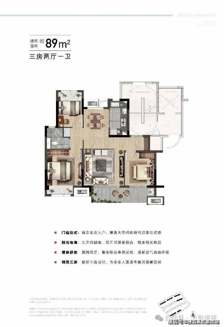 【户型鉴赏——云筑:89㎡3房2厅1卫】