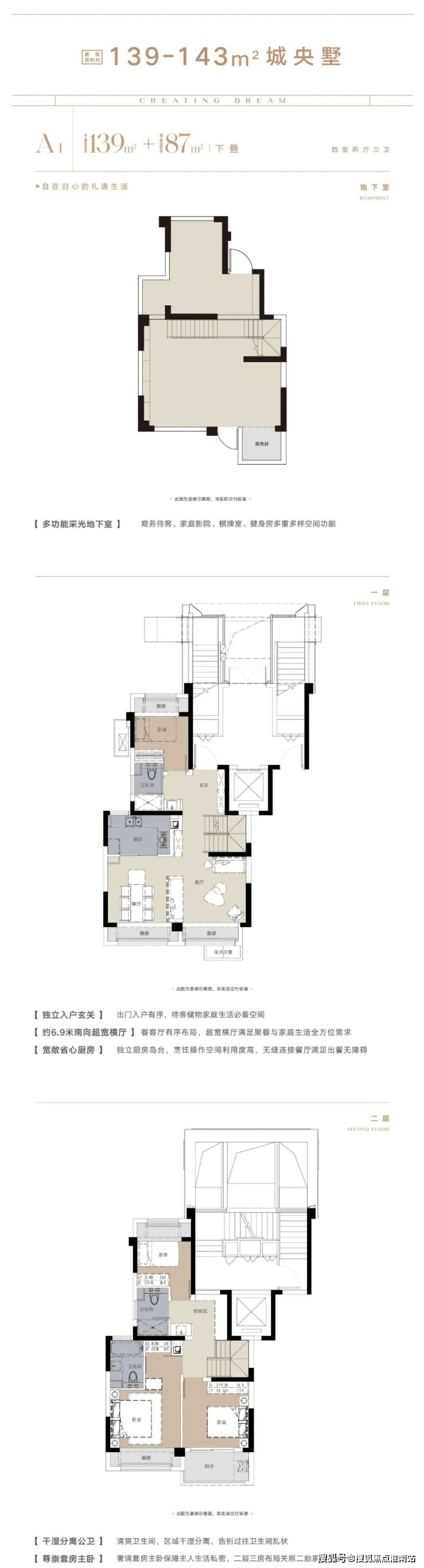 下叠:2+1三层设计,含地下百变空间(可改影音室/酒窖)