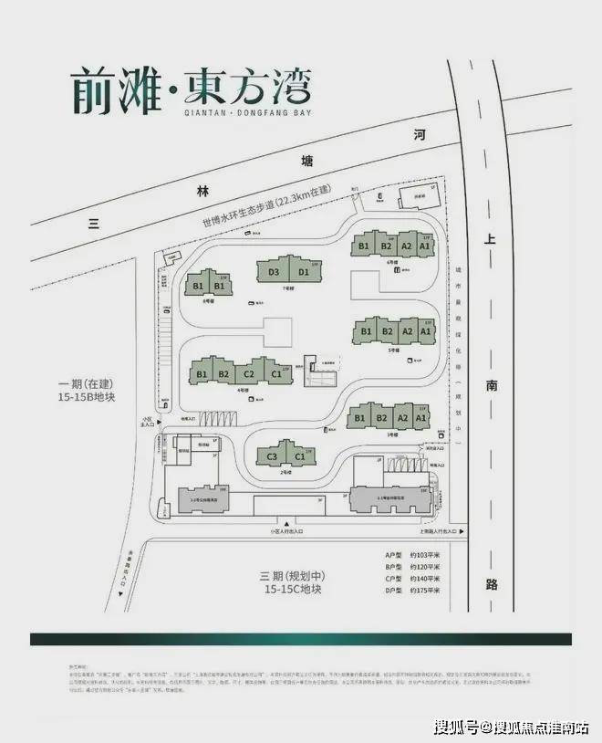 前滩·东方湾位于上海市浦东新区永泰路353弄,是浦东三林板块的高端住宅项目,主打建面约103-175㎡的3-4房户型,单价约7.8万/㎡起。