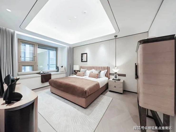 入户后进入一间卧室,自带独立南向卫生间,两处朝南的位置皆有飘窗。倘若不告诉你这是个次卧,你或许会误以为它是主卧。