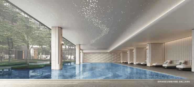 高端会所配套:约1000㎡星级会所,含恒温泳池、健身房、会客厅等