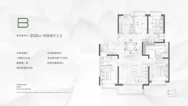 更加私密:八种户型均采用主卧套房设计,私密性更佳,一室即一世界,完满定制主人尊崇。