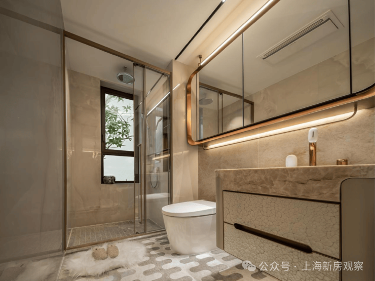 交付标准:精装交付装标约4000-6000元/㎡;标配大金中央空调、威能地暖、霍尼韦尔新风系统;厨房博世五件套,卫浴杜拉维特+科勒;全屋智能系统,支持人脸识别与智能家居联控