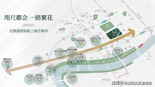自驾的话,浦西北四区的“烫金主干道”北横通道的入口距离项目只有约350米,距离内环高架也很近。最快约13分钟抵达陆家嘴,约20分钟人民广场,隆昌路隧道(规划)开通后,约15分钟可达张江科学城!