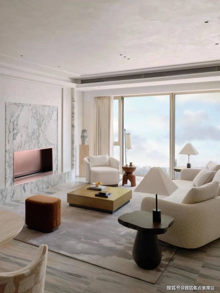 超高层大平层:采用KPF设计“水晶盒”理念,全玻璃幕墙+青铜金属线条,270°无立柱转角玻璃实现“无界视野”