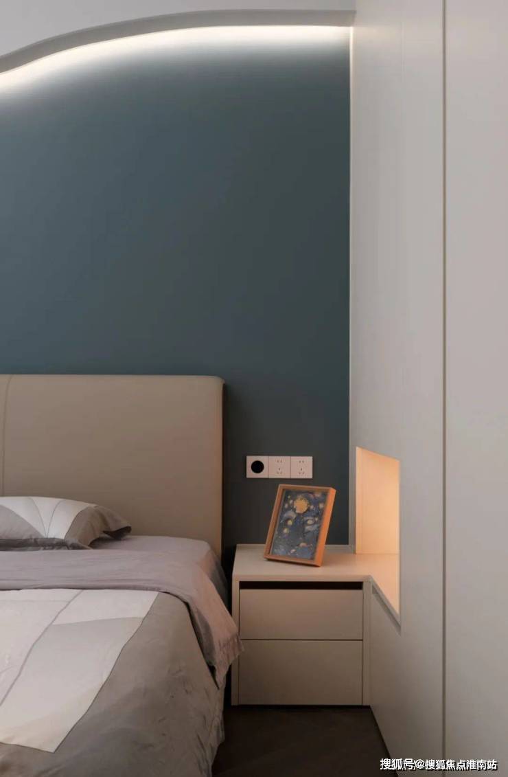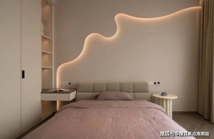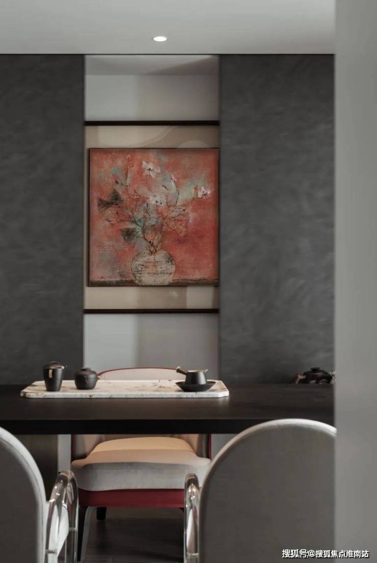 客厅面的玻璃正对处,是一整面干净的背景墙,它仿佛成为了窗外变幻的景色的幕布,点亮空间的诗意。
