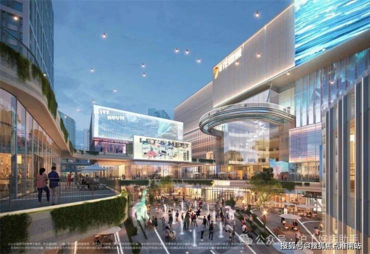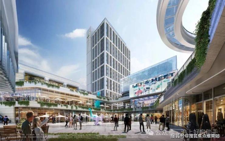 以城市中央广场等公共空间打造,城市星流汇聚的公共客厅,花园场景式商业街区,汇聚潮流方向。