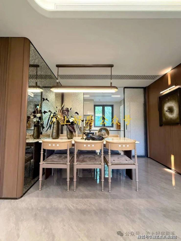 归家门厅设计为弧形顶棚,非对称构图,圆润的形式提供给业主放松的情绪价值。可以说是处处体现人居的松弛感和舒适度。