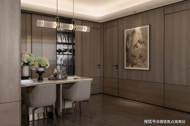 与常规新房室内没有门与墙的生硬拼凑感不同,江湾金茂府通过大量木饰面、隐藏门等细节,形成统一的设计语言,色彩与材质搭配协调统一,尽显整体美感!