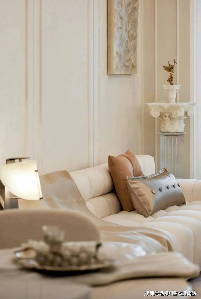 1、纯净奶油白基调,全屋流畅弧线贯穿,营造精致浪漫的松弛感。