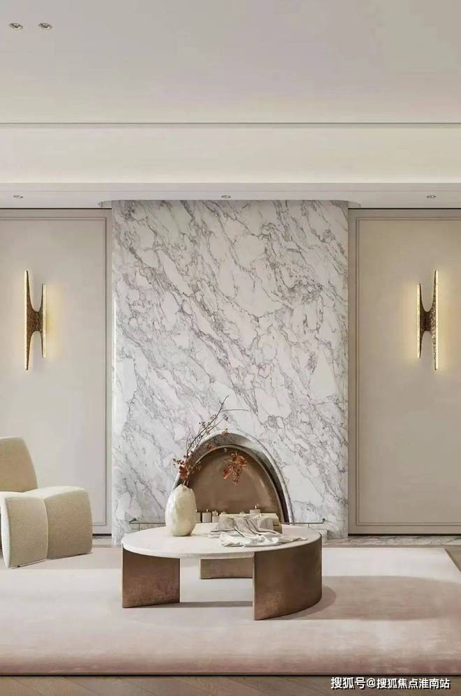 2、巧妙融合法式情调与现代元素(如奢石壁炉与液态金属漆碰撞)。