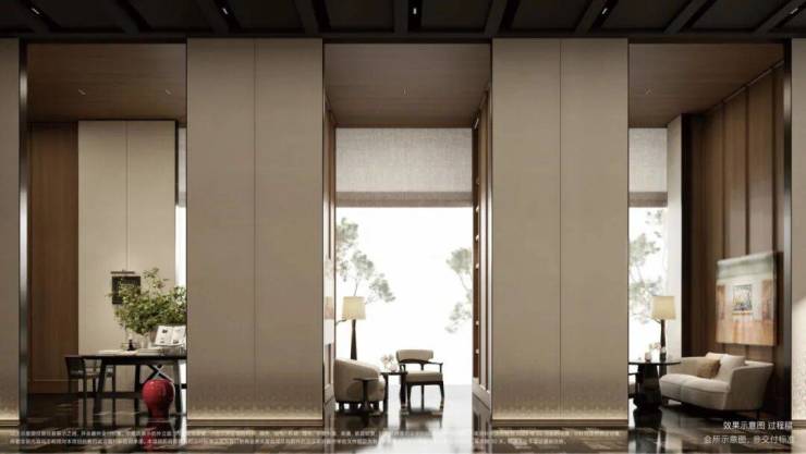 社区入口规划高逾四米的石材景墙,揉石成缎,还原风的褶皱。极致匠心