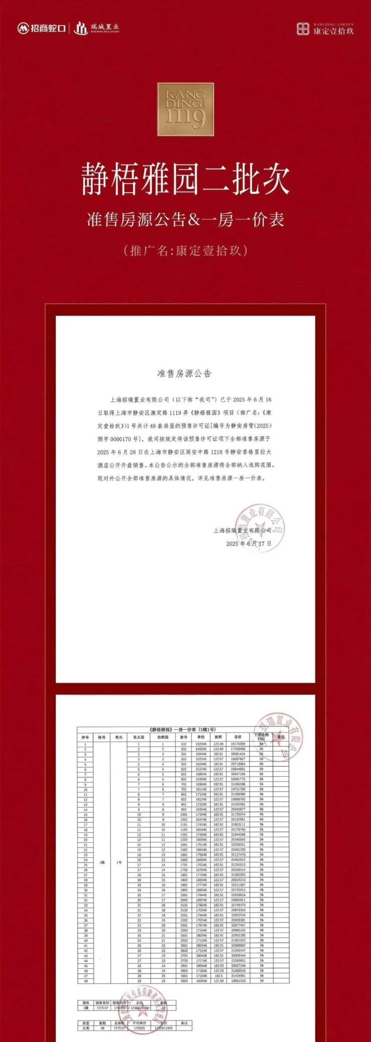 上海2024年第五批次土拍中,招商蛇口&南通瑞城联合体以总价约56.6亿元、溢价率31.2%拿下了静安区曹家渡社区C050301单元9A-20地块, 出让面积1.85万平方米,容积率2.68,成交楼面价114145元/㎡。