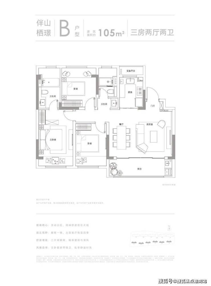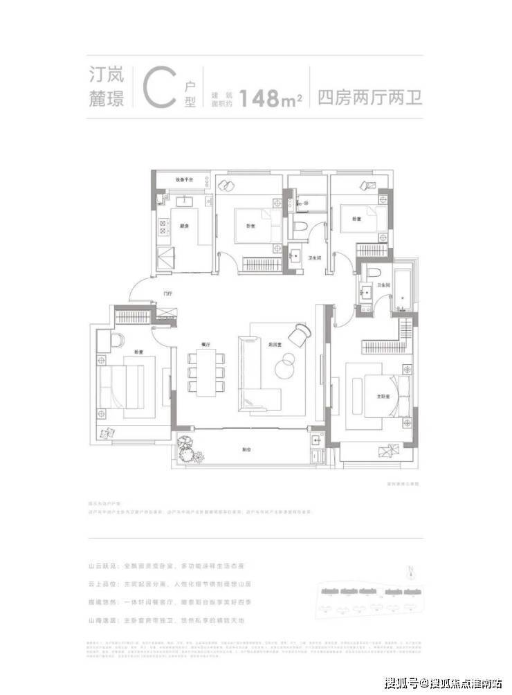 户型面积:约105㎡3房2卫、约148㎡4房2卫