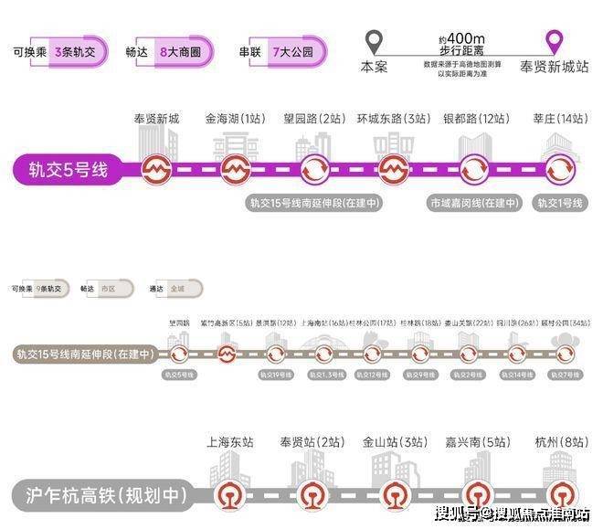 交通方面:项目多轨交环绕,5号线、15号线南延伸段(在建中)、市域嘉闵线南延伸段(规划中)、沪乍杭高铁(规划中)及南枫线(在建中)