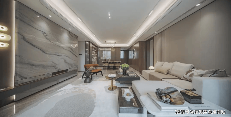 比如:电视背景墙选用带有东方意蕴的万里河山石材,颜值超高!