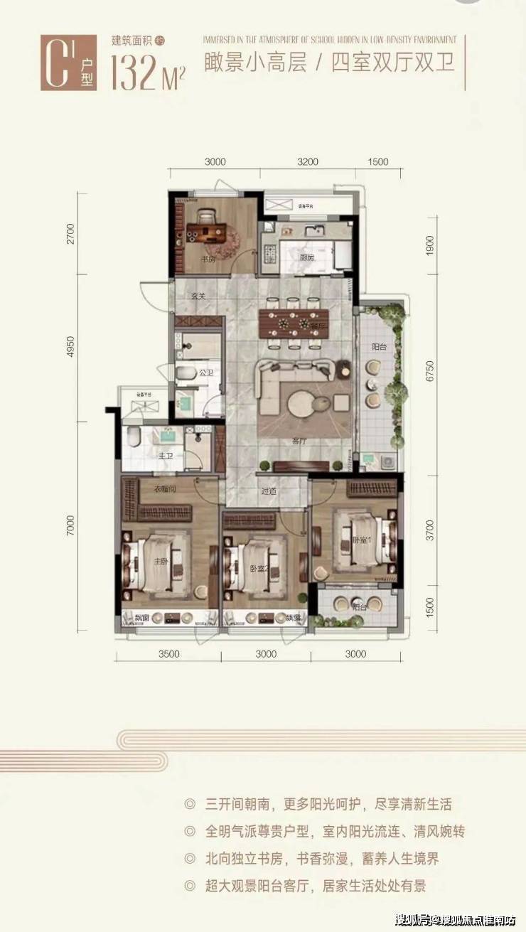 在户型打造上,主力面积以约99-109㎡舒阔三房及约131-139㎡奢适四房构成,两梯两户低梯户比,最高达约 85%得房率,户户拥有宽幕联体阳台或极目阔朗横厅,约139㎡墅质洋房高定户型,约14.2米面宽、4开间朝南、约6.6米奢尺宽厅,以令人惊叹的尺寸立序改善之巅。