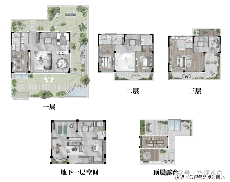 重点来看下建面约260㎡的户型。户型由包括地面三层组成,此外,地下空间与顶层露台,未来业主也可以尽情使用,真正实现“纵向生活自由”。