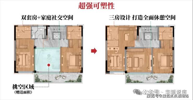 比如,2F的客厅挑高自由空间随你发挥,既可以单纯用来做 家庭成员的兴趣空间,给到更多社交、情绪空间;也可以随着家庭结构的变更,打造为更纯粹的3房设计,百变无敌!
