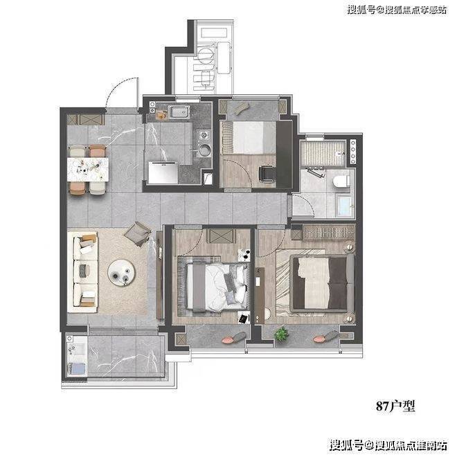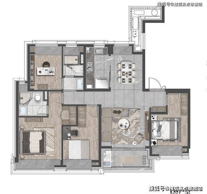 此户型贴合现代家庭的生活需求,无论是三口之家还是三代同堂,都能保证每个人拥有独立的空间。