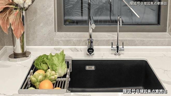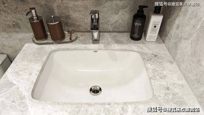 卫浴空间同样出色,采用高仪品牌的台盆、龙头、智能马桶、淋浴花洒等,主卫特别定制了“美妆冰箱”,满足业主对美妆、护肤用品冷藏的需求,体现了开发商对品质的追求。
