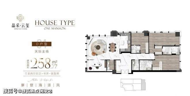 258㎡ 4房2厅3卫(全明格局,长辈房与儿童房分区)