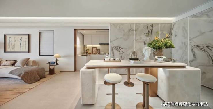 值得一提,西厨吧台 芬迪白岩板背景墙,独特的纹理和质感将整个空间的品质与艺术性拔升了一个Level。