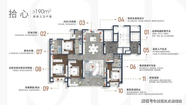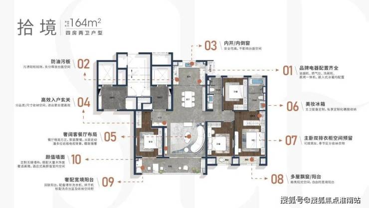 此外, 四合一指纹密码锁、厨电套装(方太蒸烤一体机、洗碗机、燃气灶、抽油烟机)、美妆冰箱、浴柜抽屉等实用细节,比起材料的拼接,这种极致的功夫和用心,生活细节的带入,无疑更显珍贵。