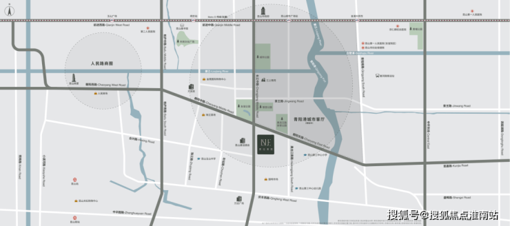 距 昆山市政府约2.4km,涵盖各类 政务办公、金融、证券总部等城市地标。东侧毗邻全新规划的 约395万㎡青阳港城市客厅,未来将与长江路、市府圈形成新的超级城市中芯地标群落。