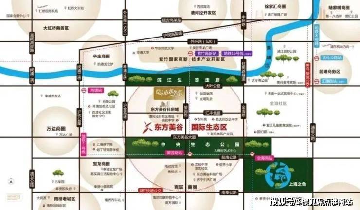 南侧紧邻上海之鱼核心生态区,并拥有完善成熟的配套与服务,园区开发承袭漕河泾品牌的核心竞争力, 是未来上海南部集生态、宜居于一体的现代服务业集群地。