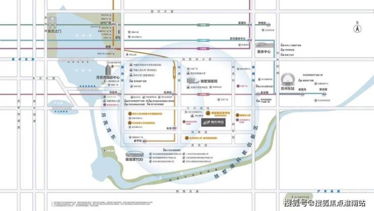 城市公园绿地环伺,项目约4KM范围内已打造成白鹭园、独墅湖生态公园、月墅公园、江滨公园、生命之源广场等约100万方生态绿肺。南侧政府重点打造约253万方吴淞江生态廊道,水系蜿蜒宽阔,滨水景观设计优美,未来将成为具有苏州特色的滨江景观长廊。