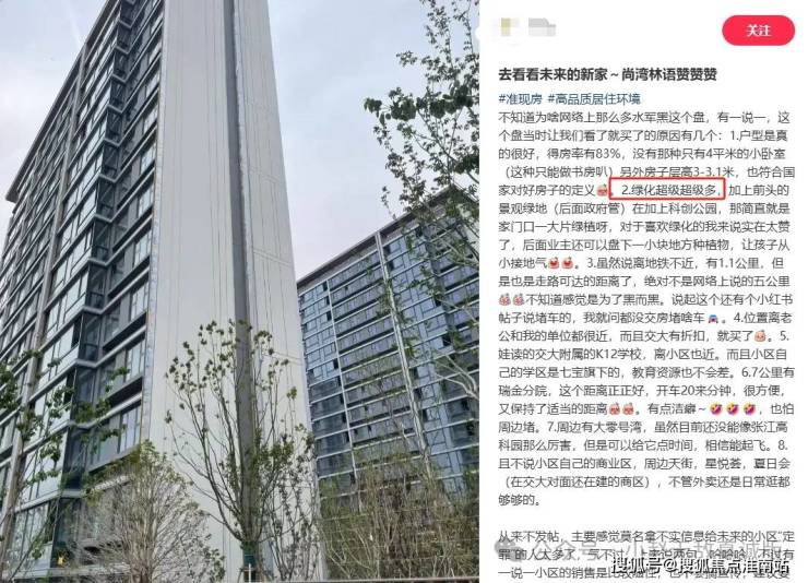 另外在社交媒体上,众多业主纷纷为项目低容积率、户型得房率、景观河道等点赞。