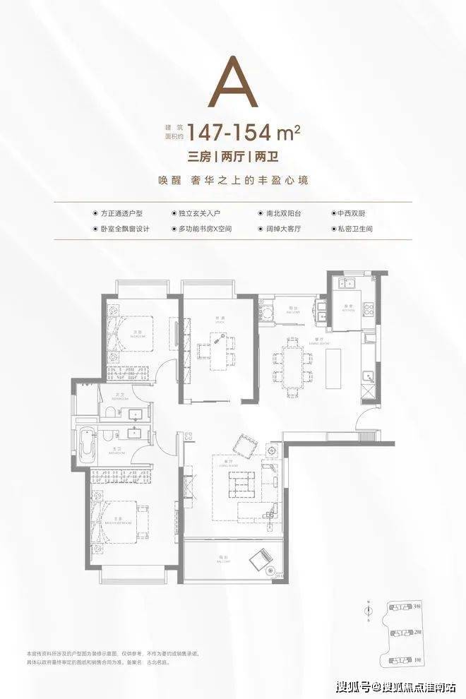 户型方面,项目主打建筑面积约134-137㎡和约150㎡精装三房: