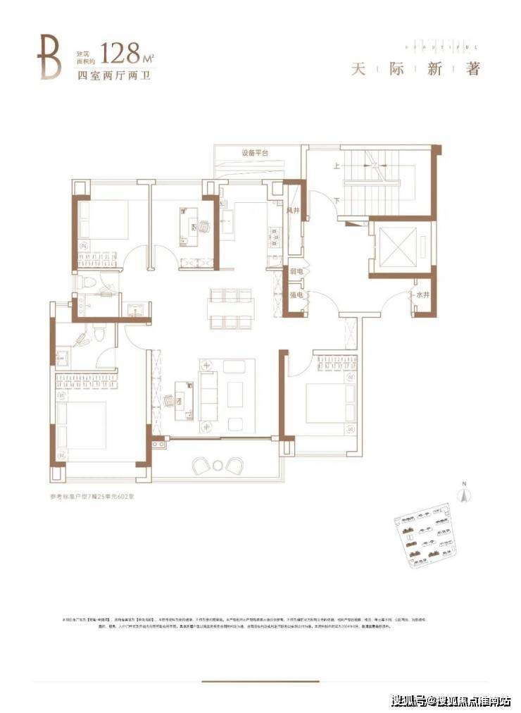 2)建面约128㎡四室两厅两卫