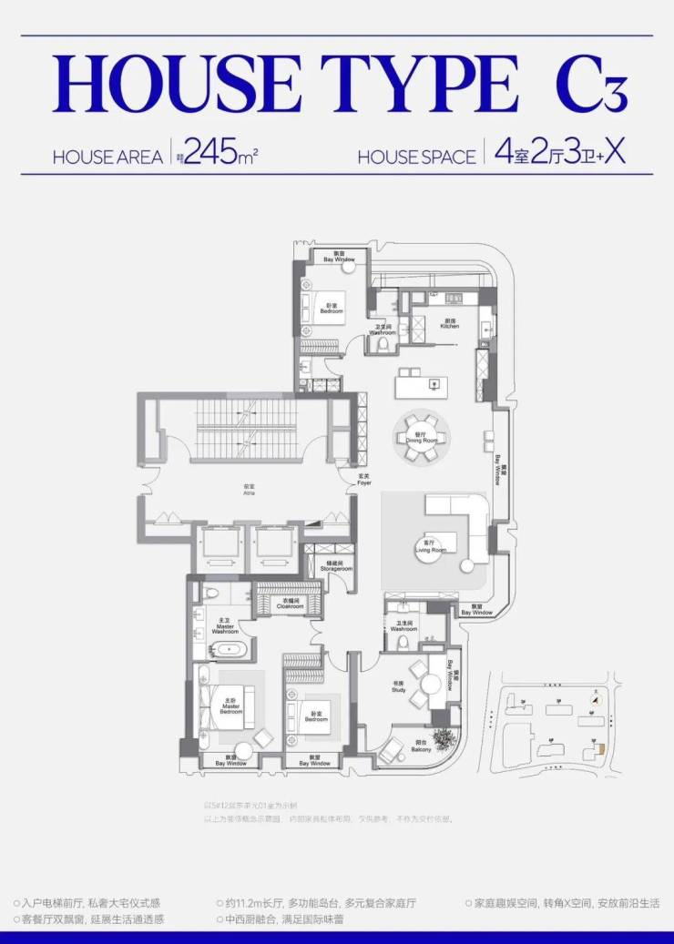 独立的中西厨,独立岛台,客餐厅一体化 ,这种设计一般250平以上户型都有。