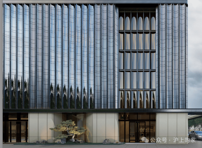 外立面:Art Deco风格,石材+金属线条,历久弥新