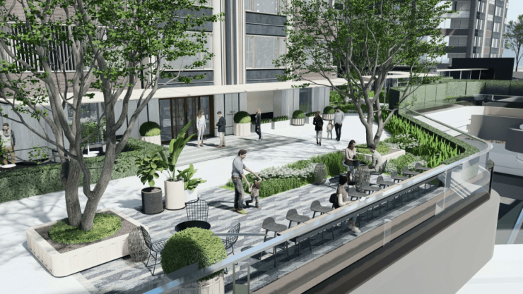 天气好的时候,业主可带着孩子或者宠物,从高线公园通过户外连桥与户外景观楼梯,直达一楼中央公园,实现漫游赏景归家。