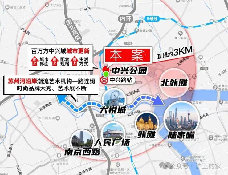 中兴路板块在离传统市心的距离上有绝对优势,直线距离3公里囊括南京西路、人民广场、外滩、外白渡桥、陆家嘴等 。上海核心商圈和地标都是你家的配套。