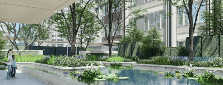 以艺术与自然为灵感,项目构建了一条通往未来社区的归家花园道,连接商街、广场和花园长廊,暗藏许多邻里互动与交往惊喜的瞬间。