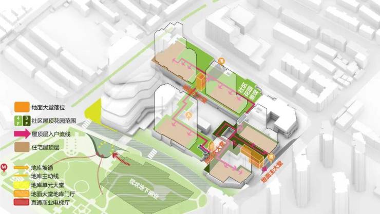 可见,项目不是商业、住宅多个功能空间的拼凑与堆叠,而是 通过空间场景的打造、形成彼此融合的紧密立体、复合活力的空间。